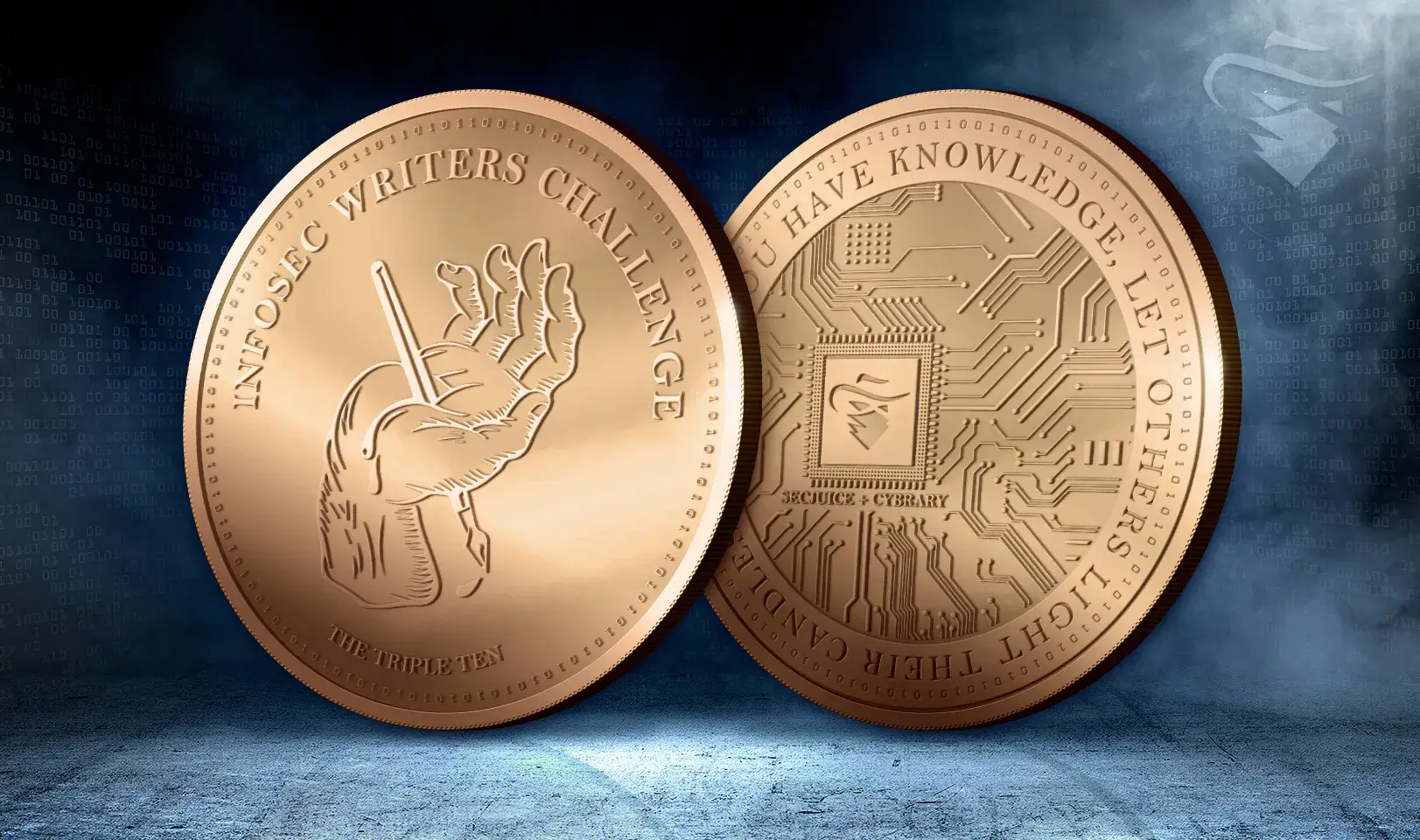 A two-sided coin design of 1.5 inches in diameter that will be embossed onto a copper metal coin.