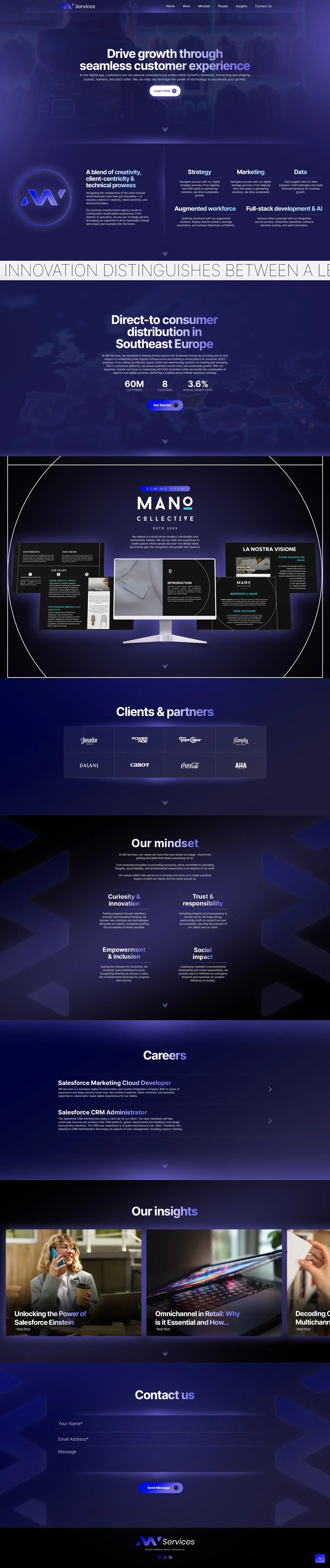 Take a look at this dark, sleek, and futuristic web design concept—an impressive example of blending innovation with clarity. The design highlights the brand’s expertise in creating seamless customer experiences. From a direct-to-consumer distribution model to insights-driven solutions and clear career opportunities, every section reflects a strong commitment to creativity, inclusion, and trust.
